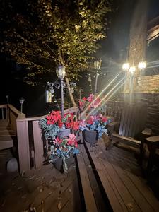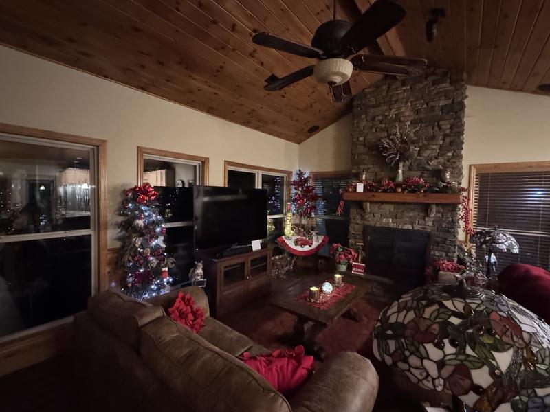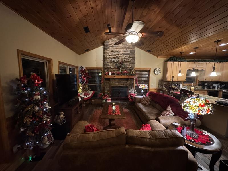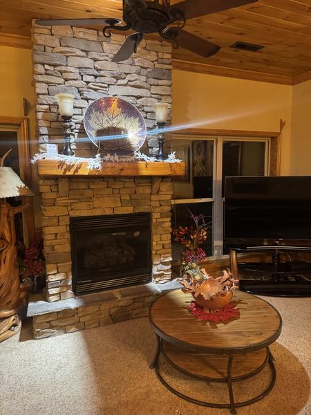 Luxury Pigeon Forge River Cabin, unit 555 Crystal Waters, has everything that you would need to create a luxurious Smoky Mountain Vacation. This unique property is located just one mile from downtown Pigeon Forge and sits on the shore of the Little Pigeon River. This property offers everything you would need for a memorable Smoky Mountain vacation including a whole house surround sound system that is Bluetooth capable, CD compatible, and radio compatible, three decks including one with a grilling area next to the water, and an outdoor kitchen that has countertops that glow at night.