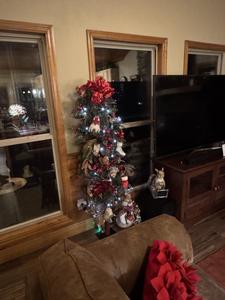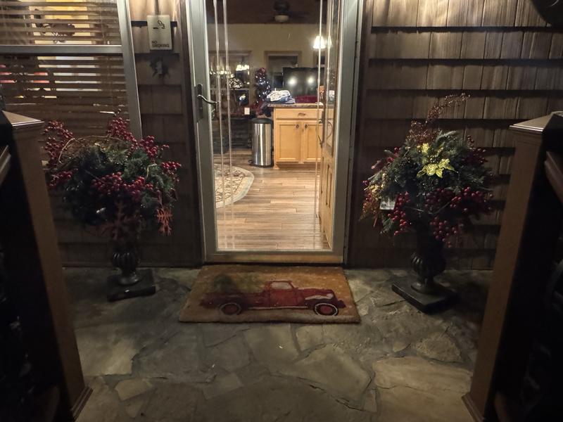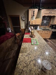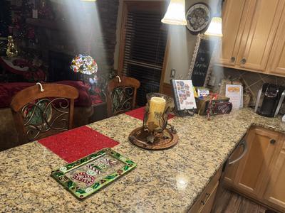 When you first enter Crystal Waters, you will notice the fully furnished kitchen that is equipped with stainless steel appliances and granite countertops. This kitchen has more than most with extra appliances including a drink fridge, standard oven, convection oven, double toaster, blender, and Ninja coffee station with both a standard coffee maker and Keurig coffee maker. The dining area is just off the kitchen and offers a dining table with seating for 6, with an additional bar countertop area with two additional seats. The living room is also on this entry level, and it features a leather couch, leather love seat, seasonal stone gas log fireplace, 70-inch flat screen TV with surround sound, smart cable box where you can watch all your favorite apps, half bath, and there is a timed light show in the evening. The Master Suite is located on this level, and it features a king size bamboo adjustable/massaging bed and a 36-inch flat screen TV. Just off the master bedroom is the master bathroom that features a walk-in shower, Whirlpool waterfall tub, 36-inch flat screen TV, walk-in closet, and a double vanity.